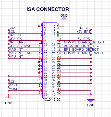 Now, I am not developing a PC here. So I do not need the ISA standard. What I need is the ISA connector type, specifically the PC/104. We are allowed to use the connector but then define our own pin assignment to the connector. For example the image below shows a snippet of one of my schematics, the PC/104 connector part.
